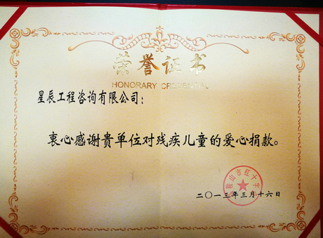 殘疾兒童愛(ài)心捐款榮譽(yù)